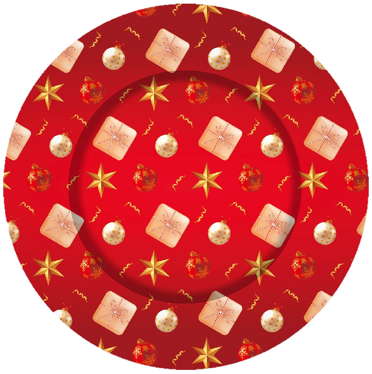 Golden Gifts Pattern Christmas Vibe Round Red Plastic Table Plate 25FA3000-XM33
