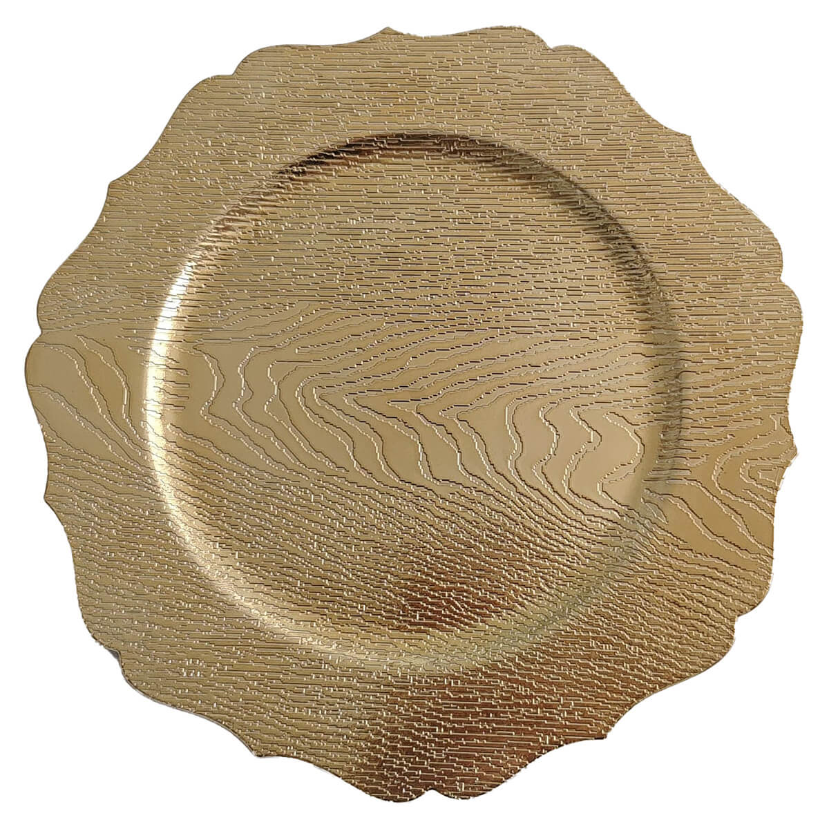 الصفحة الرئيسية » Shop » Golden Texture Antique Plating Finish PP Charger Plate 25FA3660-01