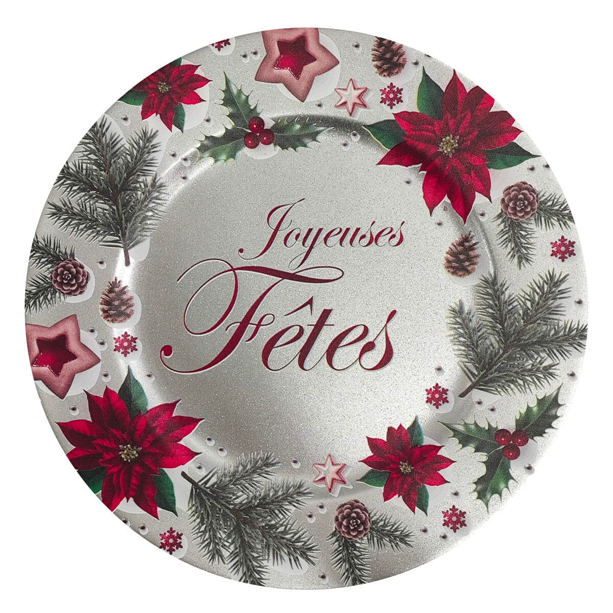 We offer an extensive range of charger plates with 1,000 different shapes, and each shape is available in multiple surface treatment finishes. In total, we have nearly 10,000 styles for your selection. Please contact us, and we will send you our latest catalog for you to choose from.