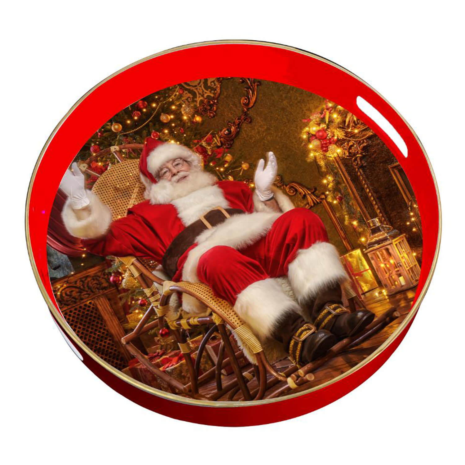 Paper Decal Santa Claus Round Decorative Table Tray 23FA3085-XM111 for Christmas