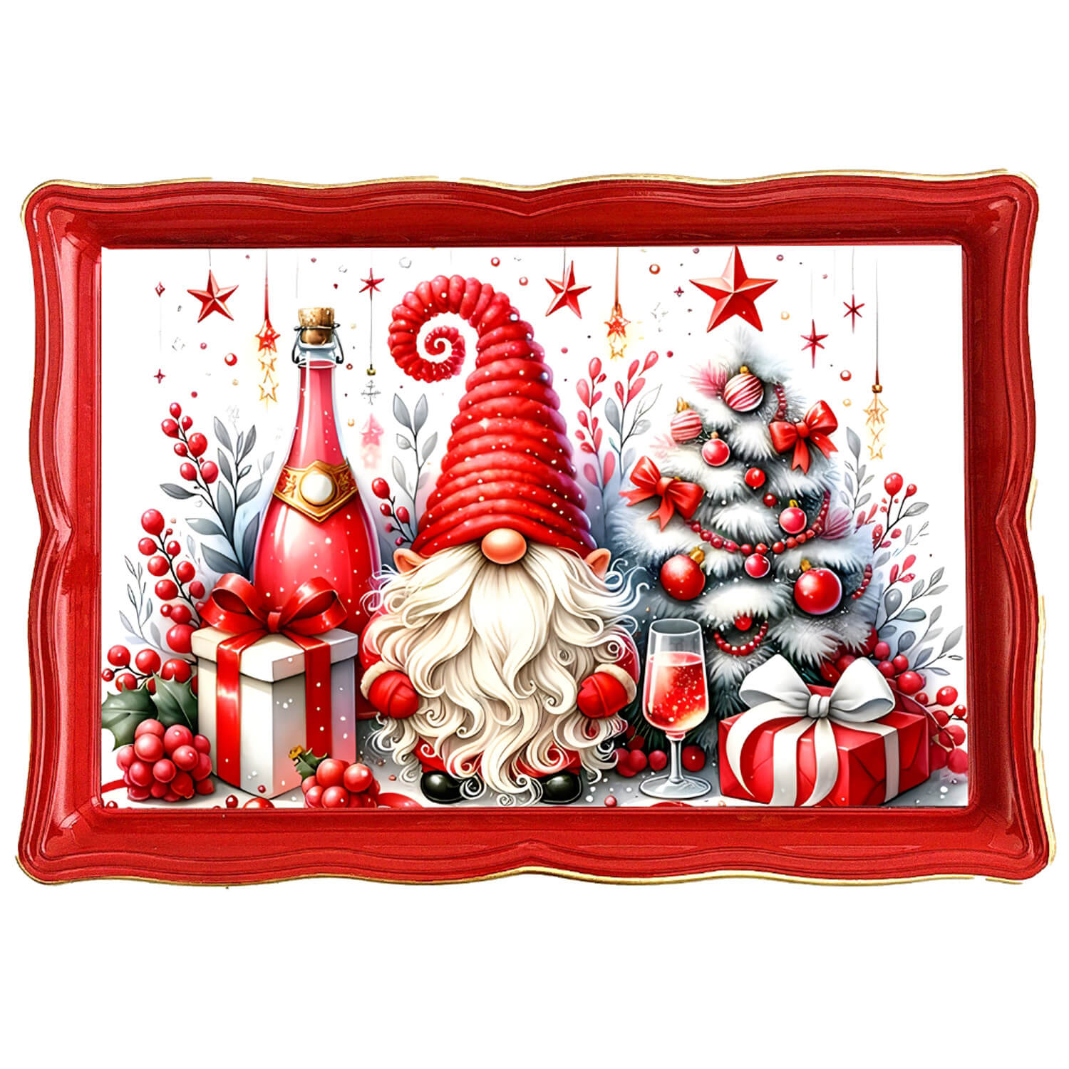 Red Christmas Vibe Paper Decal Decorative Rectangular Table Tray 24FA3066-XM503